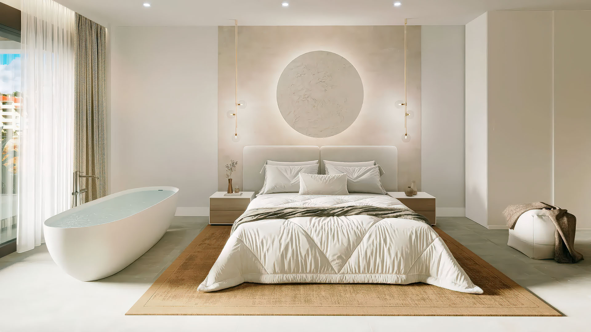 De architectuur van Korall Residences is ontworpen met een sterke focus op duurzaamheid en zintuiglijke beleving. Natuurlijke materialen, zachte kleuren en vloeiende lijnen creëren een harmonieuze relatie tussen woning en landschap. Elk detail is zorgvuldig uitgewerkt om een gezonde en ontspannen levensstijl te ondersteunen, met respect voor het milieu en aandacht voor energie-efficiëntie. In samenwerking met gespecialiseerde designers is personalisatie mogelijk, zodat elke woning een weerspiegeling wordt van de persoonlijke stijl en levenswijze van de eigenaar