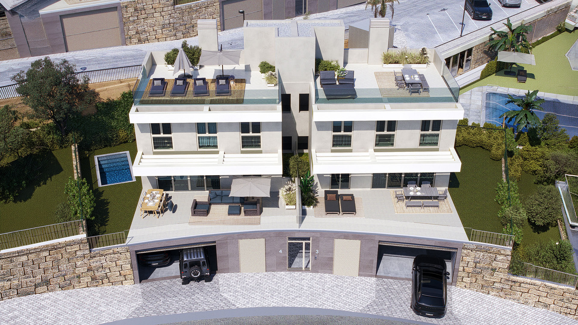 Deze semi-vrijstaande villa te koop in La Cala de Mijas maak deel uit van een exclusieve residentiële project Calanova Homes, dat bevindt zich op een bevoorrechte locatie aan de Costa del Sol, in een rustige en groene omgeving op korte afstand van de kust en het levendige centrum van La Cala de Mijas. De ligging combineert privacy en natuur met uitstekende bereikbaarheid, dankzij de nabijheid van de AP-7 snelweg waardoor plaatsen zoals Marbella, Fuengirola en de luchthaven van Málaga snel en eenvoudig te bereiken zijn. In de directe omgeving bevinden zich diverse golfbanen, stranden, restaurants en recreatiemogelijkheden, waardoor bewoners kunnen genieten van het beste wat de Costa del Sol te bieden heeft, terwijl ze thuis tot rust komen in een serene woonomgeving. De woningen zijn ontworpen met een moderne architectuur die ruimte, licht en comfort centraal stelt. Grote raampartijen en open-plan indelingen zorgen voor een natuurlijke verbinding tussen de binnen- en buitenruimtes en laten veel daglicht binnen. Elke woning beschikt over vier ruime slaapkamers en een extra multifunctionele ruimte die kan worden ingericht als kantoor, fitness, bioscoopkamer of speelruimte. Hoogwaardige materialen en zorgvuldig gekozen afwerkingen creëren een stijlvolle en warme sfeer, terwijl royale terrassen en buitenruimtes perfect zijn om te genieten van het mediterrane klimaat. De keukens vormen het hart van de woning en zijn volledig uitgerust met designkasten, porseleinen werkbladen en hoogwaardige inbouwapparatuur van Bosch. De badkamers combineren elegantie met functionaliteit en zijn voorzien van kwalitatieve materialen, moderne sanitaire voorzieningen en vloerverwarming voor extra comfort. Door het hele ontwerp heen is aandacht besteed aan detail, duurzaamheid en gebruiksgemak, waardoor een aangename en efficiënte leefomgeving ontstaat. Calanova Homes is volledig omheind en biedt een reeks hoogwaardige gemeenschappelijke voorzieningen die bijdragen aan een ontspannen levensstijl. Bewoners kunnen genieten van fraai aangelegde tuinen, een verlicht zoutwaterzwembad, een wellness- en spa-ruimte, een volledig uitgeruste fitnessruimte en diverse gemeenschappelijke zones om te ontspannen. Daarnaast zorgen faciliteiten zoals een beveiligde toegang, video-intercom, pakketruimte en liften voor comfort en veiligheid. Veel woningen bieden open uitzichten op de zee en de omliggende bergen, terwijl sommige eigendommen beschikken over een privé solarium met panoramische vergezichten. De woningen zijn ontworpen met aandacht voor energie-efficiëntie en duurzaamheid, onder meer door aerothermische systemen voor warm water en klimaatregeling, geavanceerde isolatie en in sommige gevallen zonnepanelen. Tevens is er voorbereiding voor laadpunten voor elektrische voertuigen en wordt duurzaam water- en energiegebruik gestimuleerd. Elke woning beschikt over twee privé parkeerplaatsen en ruime bergingen, en er is de mogelijkheid om extra voorzieningen zoals een privé zwembad of lift te integreren. Dankzij de hoogwaardige afwerking, de strategische ligging en de beperkte beschikbaarheid vormt dit project niet alleen een comfortabele woonplek, maar ook een aantrekkelijke investering. Het biedt een unieke kans om te genieten van een moderne en ontspannen levensstijl in een van de meest gewilde regio’s van de Costa del Sol. Wenst u meer informatie over deze semi-vrijstaande villa te koop in La Cala de Mijas, de plannen of wenst u een bezoek te plannen, aarzel dan niet contact met ons op te nemen. Highlights Volledig ingerichte keuken Open-plan leefruimte Kwalitatieve materialen Privé garage en berging Op maat gemaakte kledingkasten Prachtige open zichten Privé tuin met (optioneel) zwembad Gemeenschappelijke aangelegde tuinen Zwembad, gym, spa