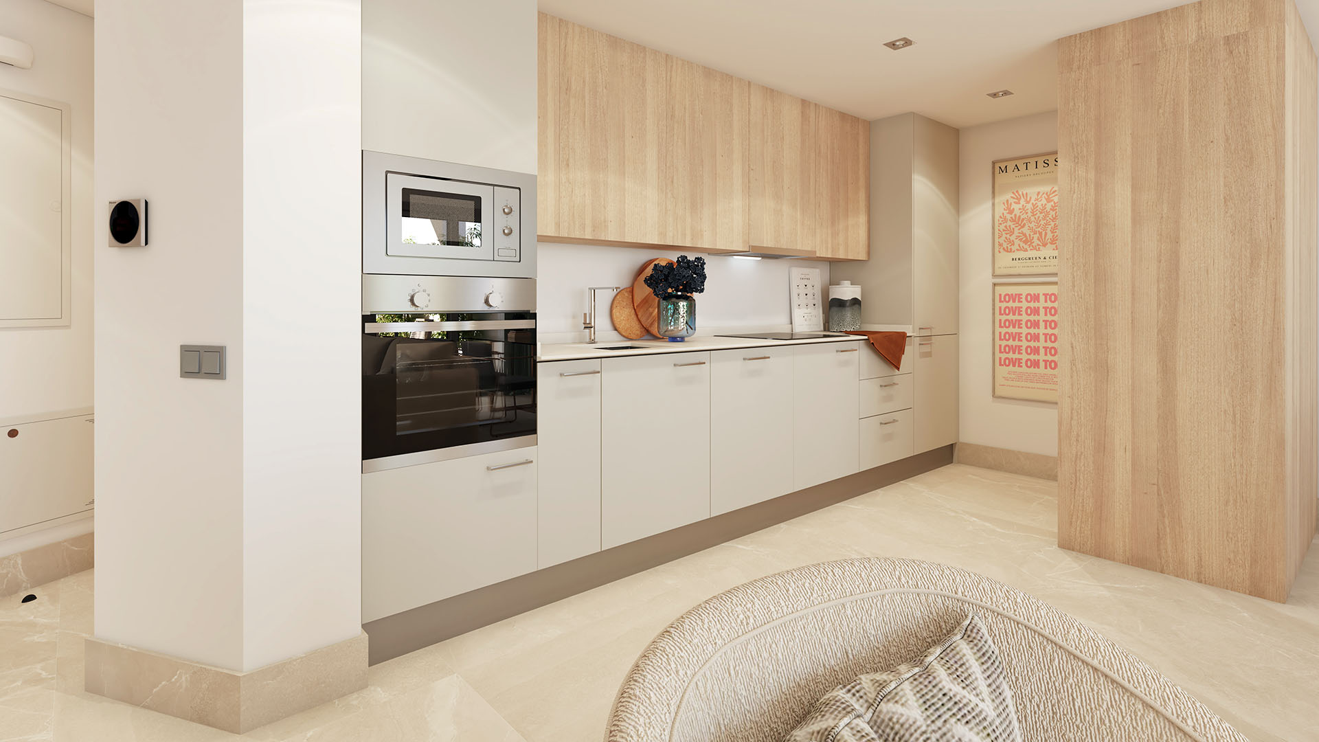 Ontdek dit nieuwbouw appartement te koop in Mijas in een aantrekkelijke nieuwe residentiële ontwikkeling met de naam Valley Views. Perfect gelegen tussen het charmante La Cala de Mijas en de levendige kuststad Fuengirola, heeft een bevoorrechte locatie in Mijas,. Het project omvat 54 elegante appartementen met twee en drie slaapkamers, ontworpen om optimaal te genieten van panoramische zichten op zowel de bergen als de glinsterende Middellandse Zee. Dankzij de zuidoost- en zuidwestoriëntatie genieten de woningen de hele dag door van overvloedig natuurlijk licht, wat zorgt voor warme, lichte en uitnodigende interieurs die perfect aansluiten bij het mediterrane leven. De appartementen zijn ontworpen volgens het moderne “total living”-concept, waarbij grote schuiframen de binnenruimtes naadloos laten overlopen in ruime terrassen. Zo wordt het buitenleven een vanzelfsprekend verlengstuk van de leefruimte en kan men volop genieten van zon, rust en uitzicht. Elke woning is uitgerust met een volledig ingerichte keuken met moderne toestellen, stijlvolle ingebouwde kasten en volledig afgewerkte badkamers met meubel, spiegel en douchewand. Airconditioning is standaard voorzien en er zijn mogelijkheden om de woning verder te personaliseren naar eigen smaak en behoeften. Valley Views is een afgesloten residentie met fraai aangelegde tuinen en een gemeenschappelijk zwembad dat uitkijkt over zee. In fase één beschikt elke woning over een ondergrondse parkeerplaats en een privéberging, wat extra comfort en functionaliteit biedt. Het project werd ontworpen met oog voor kwaliteit, duurzaamheid en energie-efficiëntie, met voorzieningen zoals aerothermie voor warm water, LED-verlichting, dubbele beglazing en pre-installatie voor het opladen van elektrische voertuigen. De oplevering van fase één is gepland voor maart 2027, wat deze woningen bijzonder interessant maakt voor zowel gezinnen, actieve levensgenieters, gepensioneerden als investeerders. Door de aanhoudend hoge vraag naar huurwoningen aan de Costa del Sol zijn deze appartementen uitermate geschikt als vakantiewoning of als investering voor zowel korte- als langetermijnverhuur. De ligging is een absolute troef. Binnen enkele minuten bereikt u het Miramar Shopping Centre, uitgestrekte zandstranden, heldere zee en diverse gerenommeerde golfbanen zoals Cerrado del Águila, Chaparral en Mijas Golf. Dankzij de uitstekende verbindingen met de kust en het achterland combineert Valley Views moeiteloos rust, natuur en bereikbaarheid. Het resultaat is een harmonieuze woonomgeving waar modern comfort, mediterrane levensstijl en investeringspotentieel samenkomen op een van de meest gegeerde locaties van de Costa del Sol. Wenst u meer informatie over dit nieuwbouw appartement te koop in Mijas, de plannen of wenst u een bezoek te plannen, aarzel dan niet contact met ons op te nemen.